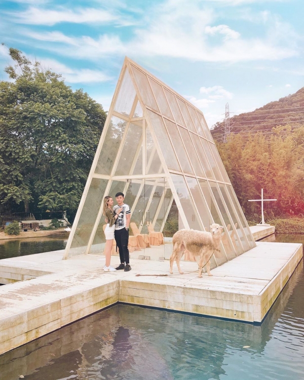 桃園親子農場大溪富田香草休閒農場(富田花園農場)夢幻好拍又好玩!草尼馬、麝香豬與小羊等眾多動物近距離餵食,夢幻水上玻璃教堂及許多拍照場景IG打卡好適合;還有手作diy、小火車等,多元玩法一日遊好豐富!