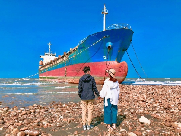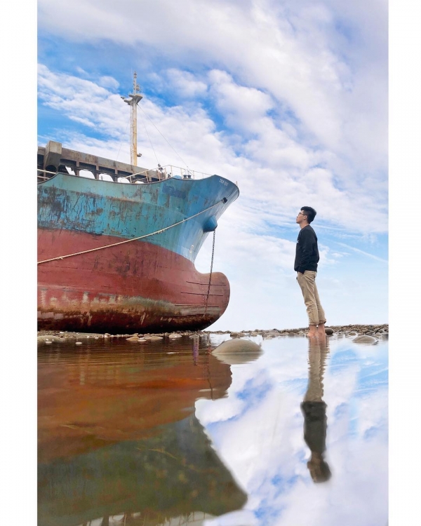 前陣子突然出沒在桃園竹圍漁港的紅藍相間的大貨輪,成了大家最近超常打卡的景點,簡單壯觀的貨輪因為退潮得以靠近拍照,海面的倒映也超級美!不過貨輪預計12月中將移走,所以還沒拍到照的朋友們,動作要加快囉!