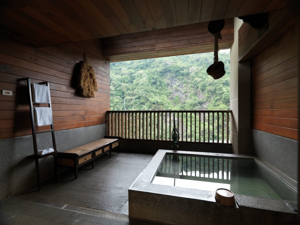 位於烏來堰堤之上有一間溫泉會館,外觀以極簡、自然為設計風格,周圍精心設置了圍籬,還有水池造景,整個與大自然融為一體,提供私人的溫泉湯浴、客房湯、大眾湯池、茶屋以及寬敞的套房,是個清幽的渡假秘境。