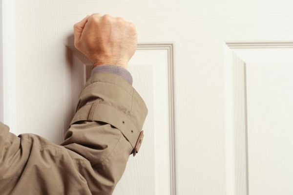 敲門是出於一種尊重,和裡面的好兄弟知會聲有人準備要進入房間,而側身進入則是為了讓好兄弟方便出去