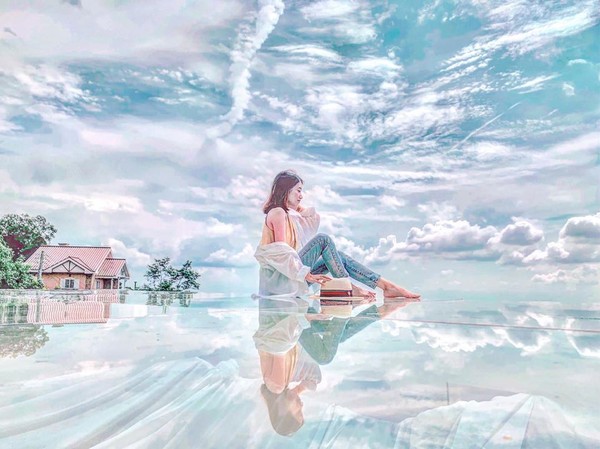 台中又有新的打卡秘境!位於酒桶山的藏寶莊園是一對小夫妻經營的複合式餐飲園區,販售無菜單料理和飲料,店面以貨櫃屋為基底,將一半的牆換成大面積的落地窗,屋頂也用整面玻璃光,再用白色簾布遮陽防止太陽直曬,是一個裝置藝術,讓屋頂變成超夢幻的「天空之鏡」。