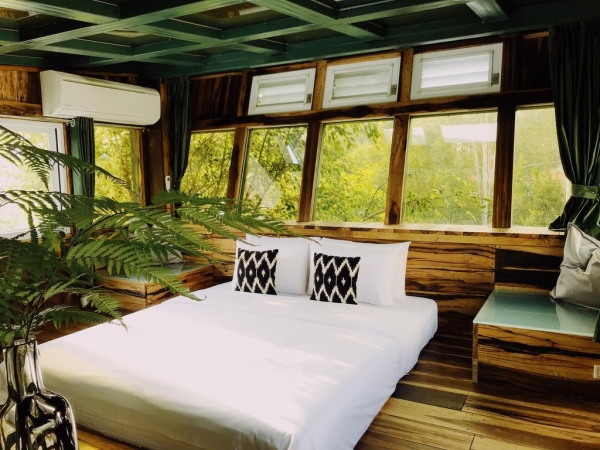 房間設計上利用木頭與許多綠色植物打造一種森林感的度假風格,採光非常好,真的彷彿入住在花園裡!所有木材建設都是使用純手工珍貴的實木!