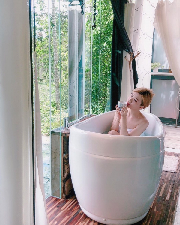 度假就是一定要泡澡放鬆身心疲勞!帶有南洋風的浴缸擺設,一邊泡澡,能一邊欣賞外面風景,享受大自然的氛圍,太enjoy了!