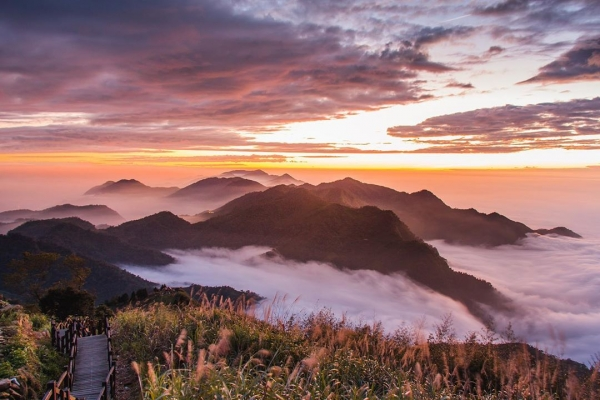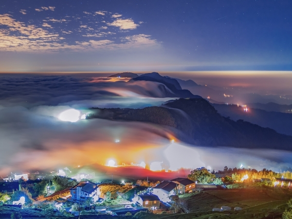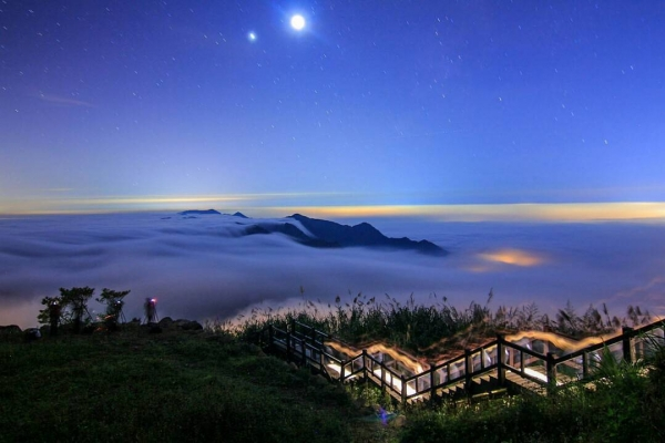 不管是白天還是夜晚,山區薄暮氤氳,隨著時間山景有著層次分明的變化,宛如一幅山水畫那樣的美麗動人,能看到這可遇不可求的美景是多麼難得一見,就算再累這一生也要爬上來親眼目睹的勝景!