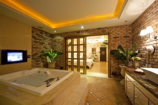 華麗風的浴缸,還有變色的燈光陪伴,這超級適合情侶居住的啦,一起在這裡享受浪漫!