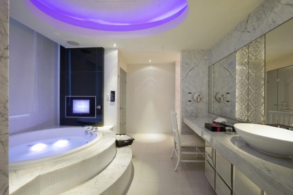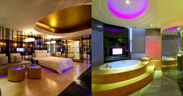 小編最想住的就是這兩個啦,超浪漫的芎底天花板,配上炫彩的燈光照射在浴缸上,感覺就是泡在花瓣裡。