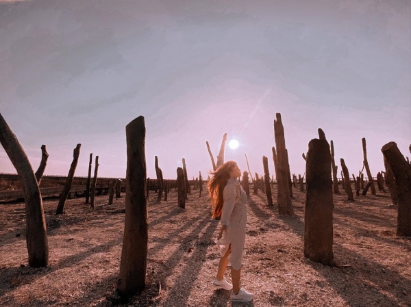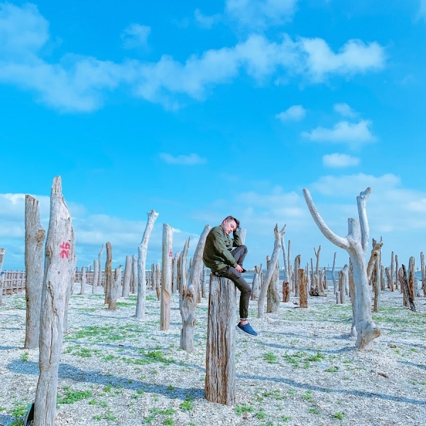 這片森林是提倡漂流木生態環保議題的造型景觀,沿著濕地建造的木頭步道,走在上面欣賞這片荒涼之地,還可以來這邊體驗採蚵與紅樹林生態教育,福寶濕地真是太有教育意義啦!