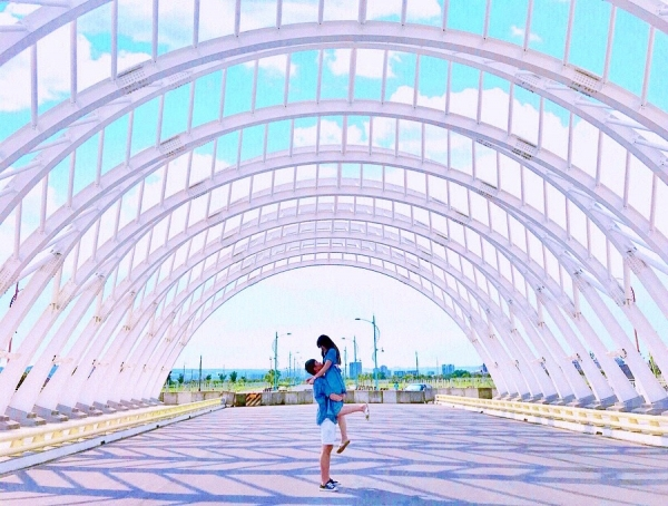 這是全台唯一有屋頂的橋,純白的橋梁和屋頂,有種波西米亞風的純淨感,配上縫隙中可見的藍天白雲,真的好療癒,小清新一定會超愛這個拍照點!