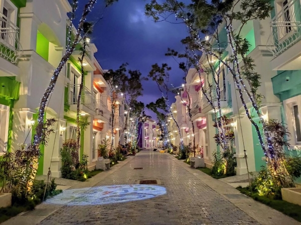 夜晚漫步在夢幻島的街上,還有浪漫燈飾來點綴,簡直美得像幅畫,不說還以為在國外度假呢!