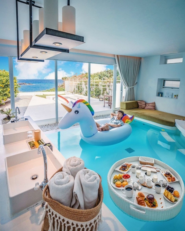 這裡有各式各樣的房型,且每一間都有不同的主題及特色,小編看了都想住一輪!不僅有私人泳池、泡澡浴缸,還能加購漂浮早餐,重點連餐具都好精緻,少女心都要噴發啦!