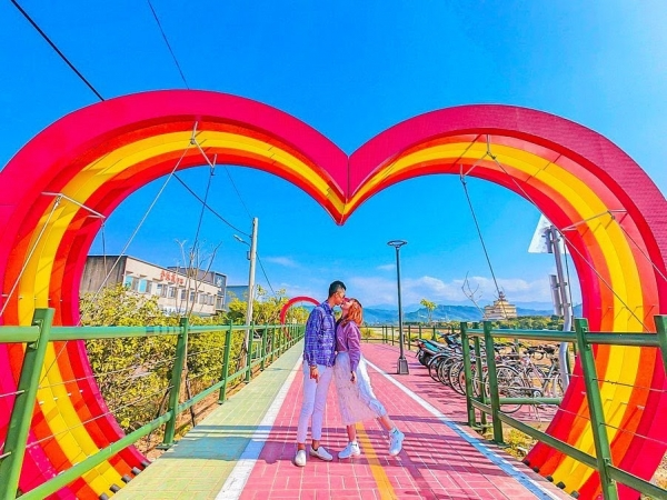 堪稱「最美的自行車道」,全長約2公里,除了其心型彩虹拱門超吸睛之外,連附近的觀光景點及美食也非常多,絕對是來台中旅遊必打卡的熱點!