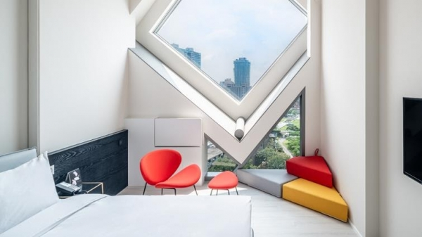 其中最具特色的就位於12樓的「星系列」房型,超狂大扇斜窗戶設計,坐在這邊就能望整片星空,浪漫指數破表啦!