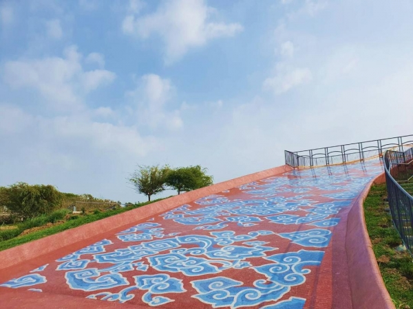 堪稱「全台最美的博物館」最近新增了許多免費設施,有紅魔毯溜滑梯、沙坑及噴水池,還有台版波波草及大片花海可以拍照,讓人不僅能欣賞靜態文物,還能在戶外玩翻天!