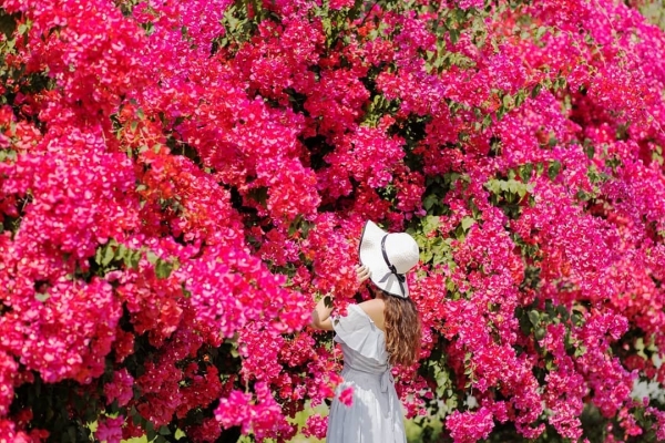 近期最夯的打卡點非仁義潭莫屬啦!開滿滿的九重葛花牆超級美,粉嫩純白色交織而成繽紛漸層色,隨手一拍都超仙,休假時絕對要來朝聖一下!