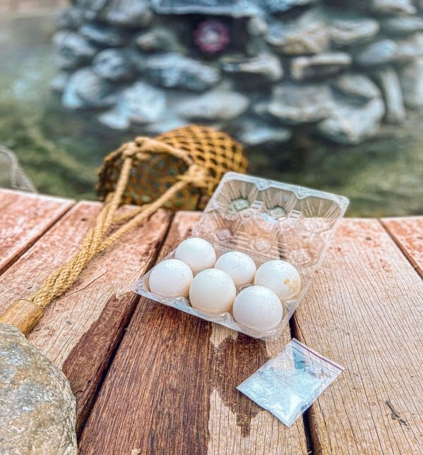 溫泉區旁還設有二座火山噴泉狀的煮蛋槽,終年冒出滾熱溫泉,可以體驗煮溫泉蛋和玉米的樂趣,散發出獨特的溫泉香,絕對是泡湯後的一大享受啊!