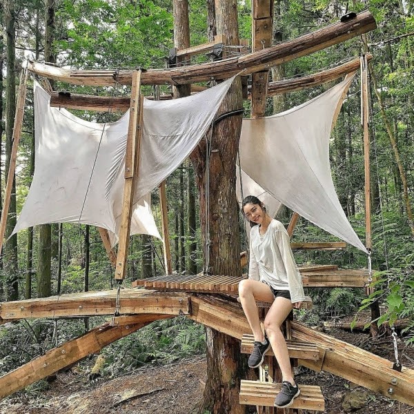 漫步在雲霧繚繞、整齊美麗的柳杉林間,拾級而上登頂海拔1212公尺,距離大溪約1小時車程,生態也非常豐富,擁有約43種山鳥,以及為數眾多的哺乳動物,連中高海拔才有的白面鼯鼠都可以在這裡看見。而近期更是增添不少森林裝置藝術,讓園區更豐富,成為親近大自然的好去處。