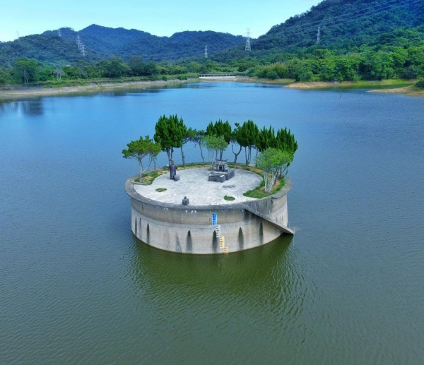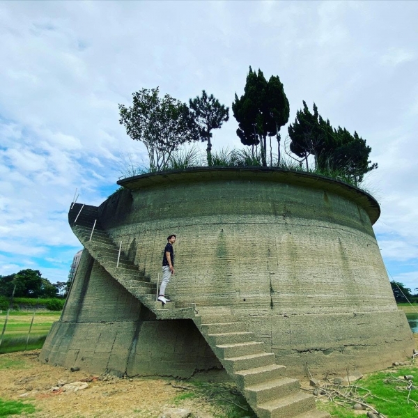 等到冬天池塘乾枯便可直接步行到島上拍照打卡!高達三層樓的圓形鋼筋水泥塔,也意外成為踏青新秘境!