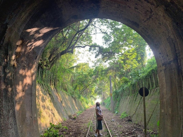 在后里圳磚橋旁的,就是八號隧道 全長518.6公尺,地勢險峻,但在走出洞口後,綠植藤蔓將隧道口染成神秘綠色世界,神隱少女般的場景映入眼簾。