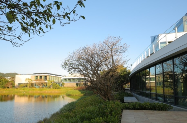 園區建築是由國際知名的符傳禎建築師領軍英國「建築文化事務所」設計,以數個建築體和其間的園林空間相互連接依托圍合,透過內涵與精神來詮釋經國先生踏實遠見與人格風範。