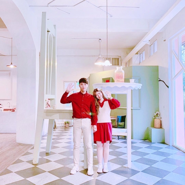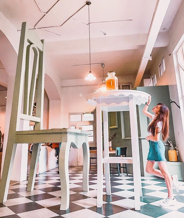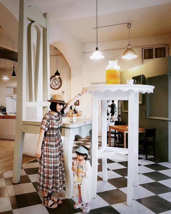 這裡的特色就是有一張比人還高大的餐桌椅~~好像來到愛麗絲國度!
