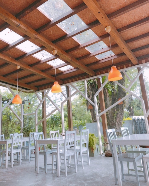 玻璃屋咖啡館-「AGRIOZ Cafe」咖啡廳內透亮白淨,落地窗外的綠意滿盈,是種一眼望去會覺得舒服的環境。