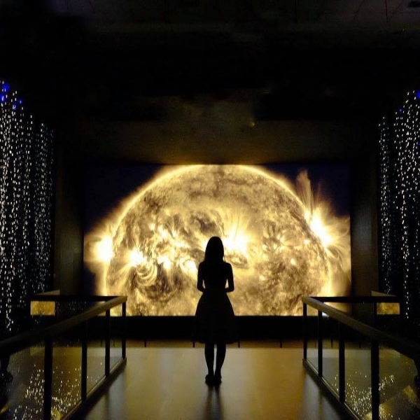 科博館「漫步太陽系」特展,以科普、文學、藝術深入淺出介紹太陽系。獲美國太空總署NASA歷時7年拍攝的高畫質太陽觀測影片,由台達電支援高品質投影技術呈現,超夢幻的場景讓你漫步在太陽系裡,看到了好多星星的故事,還有VR讓民眾駕駛太空船翱翔在太陽系,盯著宇宙的變化真的會讓人很療癒又震撼呢!
