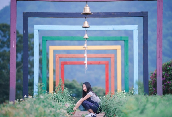 因為四周有山景,農場上的廣大不必擔心被任何建築或其他障礙物擋到,整個農場有十七公頃大,造景如花隧道和白色木屋,都在網美們打卡的排行榜上~