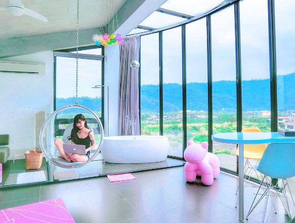 以三層「玻璃屋」打開知名度,搭配大片落地窗設計,窗外美景一覽無遺;舒適明亮的裝潢及色調豐富的家具,完全是IKEA級的居家享受,其中「透明吊椅」更在IG掀起一波熱烈討論!