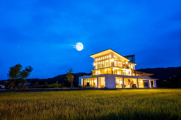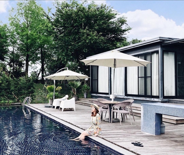 Aura Villa-悠悅光渡假民宿距離宜蘭知名景點梅花湖不遠,也是偶像劇曾經取景的地點。游泳池旁的獨立玻璃雙人villa可以說是許多情侶的首選,兩側各以大片的落地窗呈現,撥開窗簾景色是泳池河畔。不只一旁大面積的落地窗,就連頭頂上也設有小型天窗。