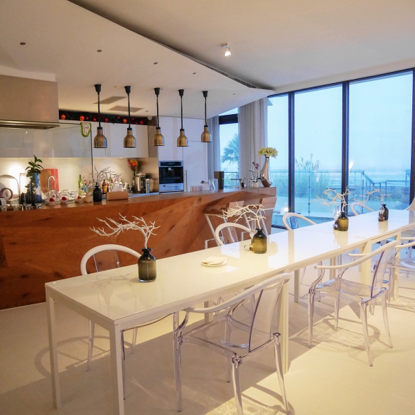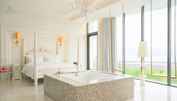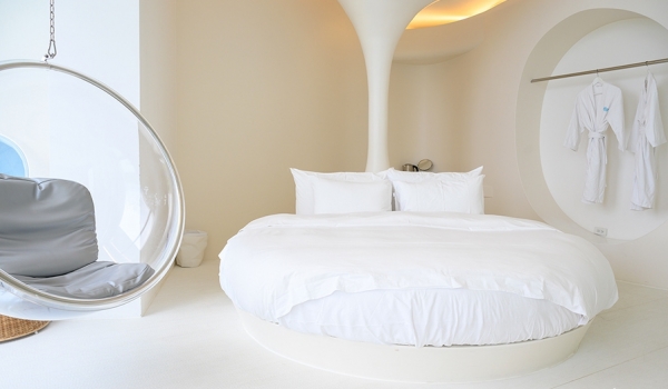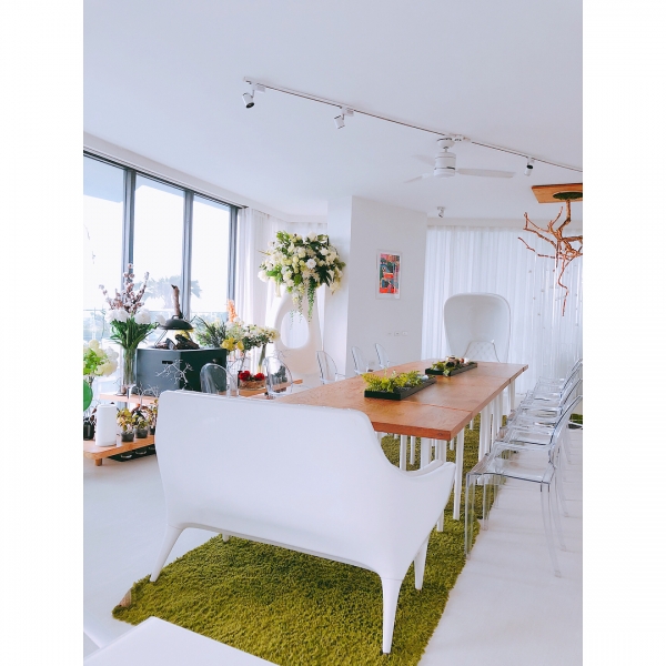 不僅建築物是以白色為主題,就連客廳也是超級明亮白,可以看的出店主要表達潔淨無瑕的情懷~