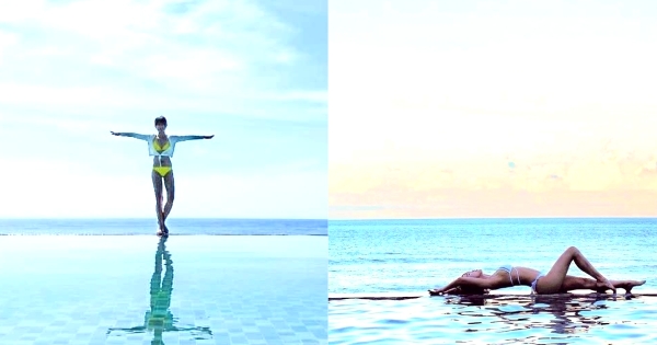 如果等泳池的水波瀾少一點時,還能拍出類似天空之鏡的效果~