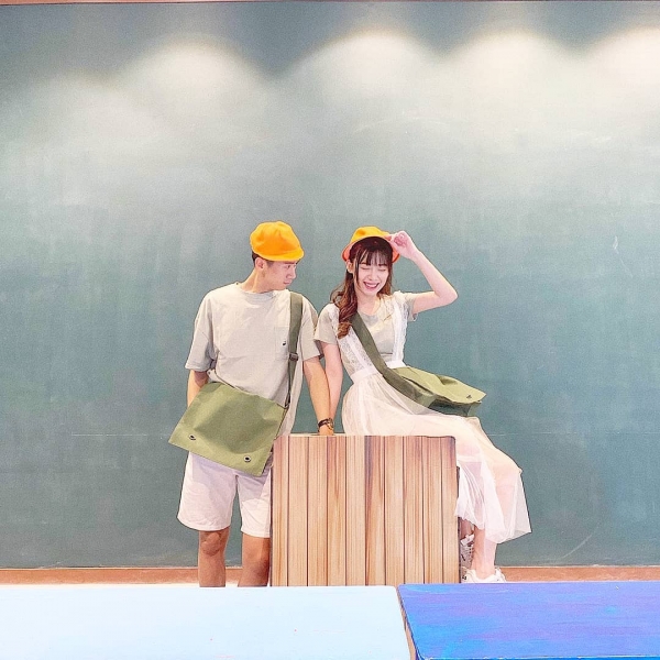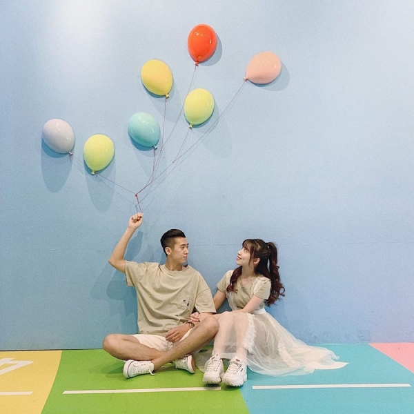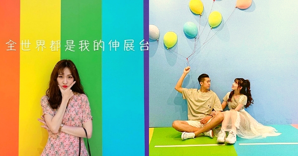 令人印象的場景,就是充滿童趣的小學教室與彩虹跑道~小學教室有懷舊感的課桌椅,而且現場提供了國小制服可以換裝,讓人坐在上面,真的像是回到了過去!而彩虹跑道的背板則是天藍色的天空,大大的紙飛機飛揚於其中,還有超級可愛的氣球們,不管什麼角度都超級好拍啊!