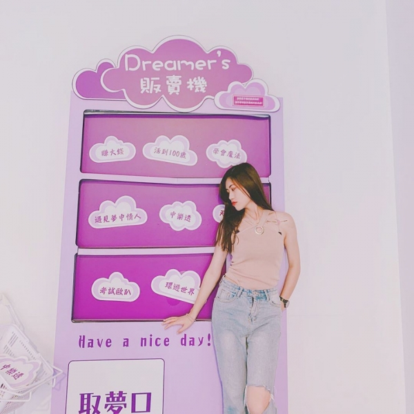 淡水海關碼頭不僅可以享受海景,還有一個完全免費、超級好拍的夢想家展覽等著大家去逛逛喔!一進入展覽展區內,馬上可以看見粉藍色的牆面上,裝飾著「Be a Dreamer」的閃閃字樣與雲朵燈管,馬上就吸引住了遊客們的眼球!