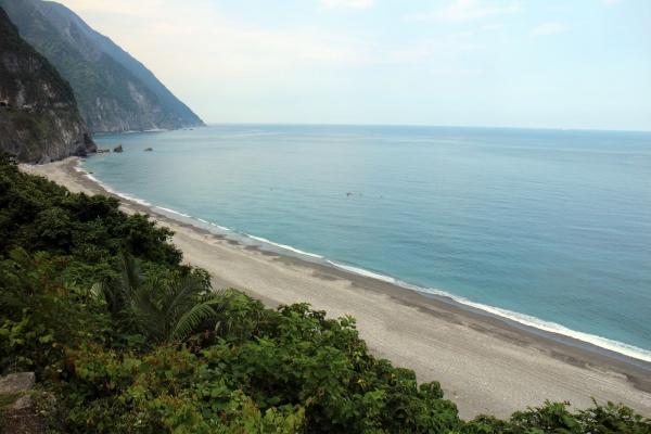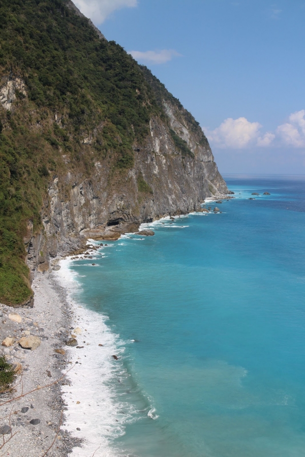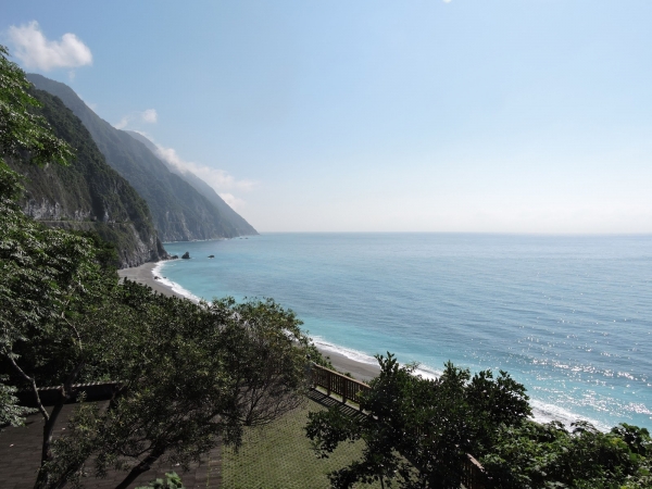 步道上往下俯瞰,北迴鐵路在清水隧道和崇德隧道之間跨越這條小溪,可看到火車在兩座隧道之間來回穿梭。浩瀚的太平洋和險峻的斷崖出現在眼前,令人頓時豁然開朗。太美啦!