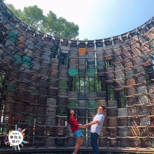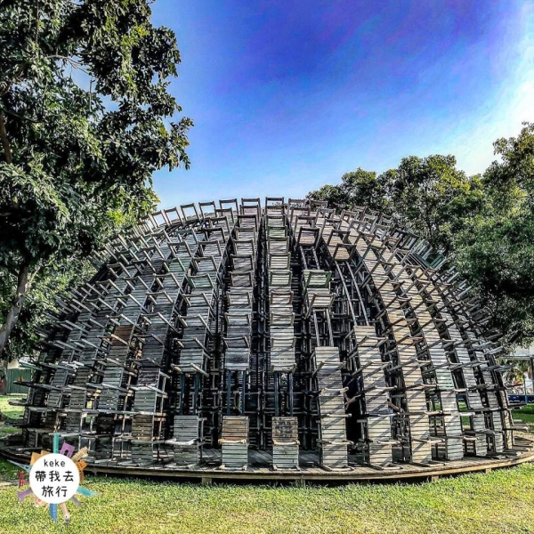 這些都是使用我們以前國小、國中坐的椅子搭建而成的,使用了1137張椅子所搭建而成,椅子背後也有寫著不同國小的名稱,看起來真的很壯觀!另外,晚上還會打光,馬上變成幽浮UFO。一起進入校園座椅所組成的迷宮樂譜吧!