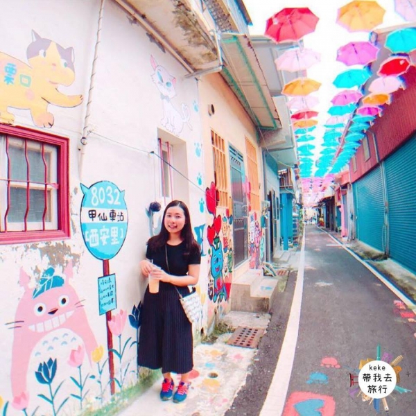 以前的街道上有不少餐廳和店家,街道的後巷變成貓咪覓食的好所在。在地藝術創作者與社區民眾發起彩繪活動,結合了許多甲仙的特色與貓咪,在這條巷弄裡進行了彩繪的工作,巷內天際上還掛著色彩繽紛的小傘,是許多遊客造訪甲仙時必來的景點之一唷!