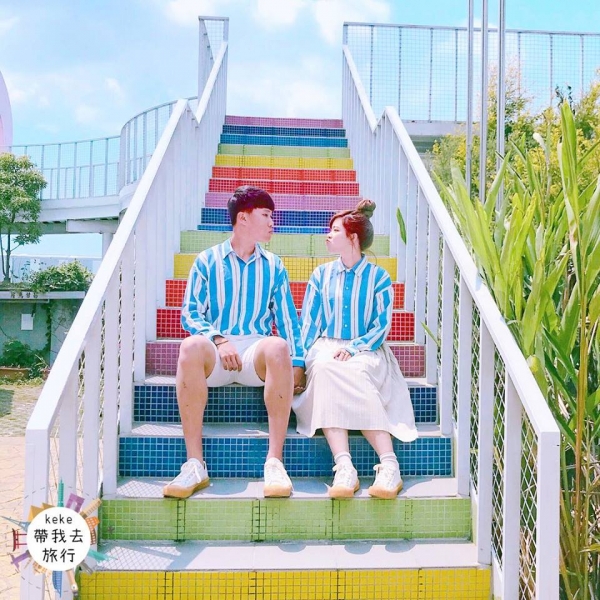 在進入愛心步道前會先經過七彩繽紛的階梯,也是超級好拍的!