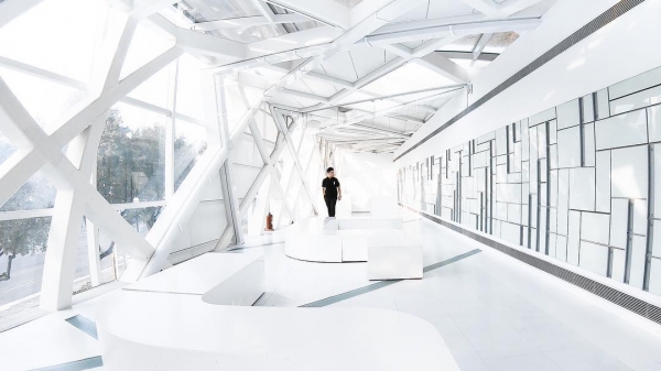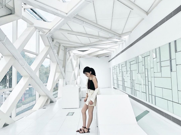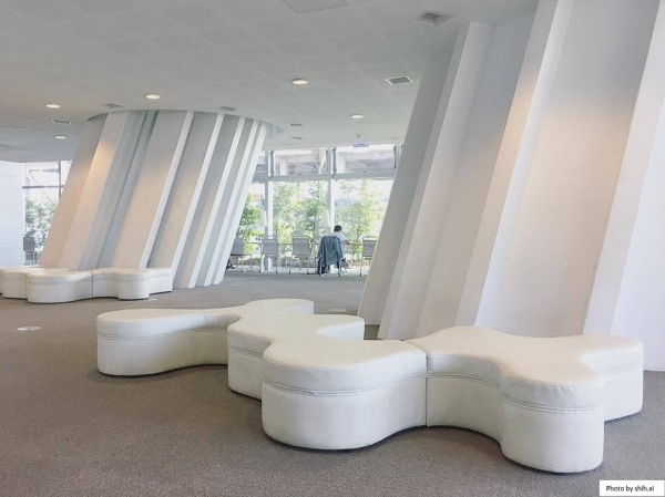 想像不到北美館也有白色秘境的網美拍照聖地吧?北美館中的玻璃長廊整區白色的設計加上落地窗與自然透進的採光,不管白天傍晚拍照都有不同的感覺。