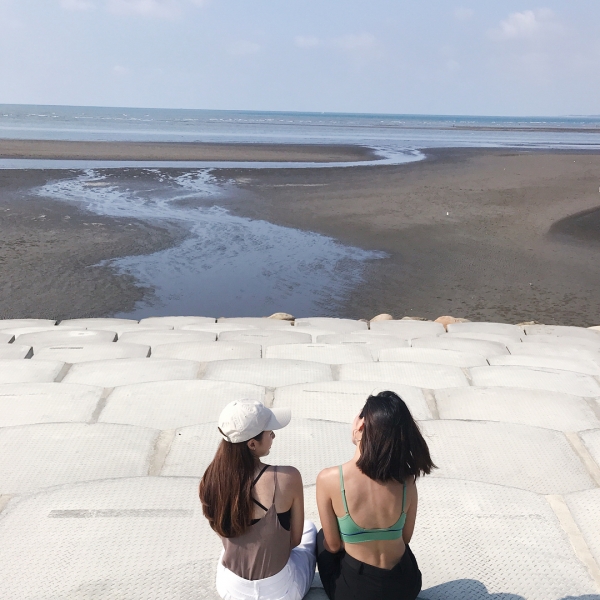 位在南寮漁港的魚鱗天梯其實是消波塊,漆成白色之後殊不知拍起照來變成一大賣點,加上後方的海景,這樣的超大佈景拍照自然不會失敗。