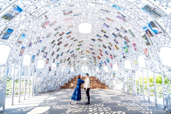 青塘園就是之前桃園地景藝術節的舉辦地點,雖然地景藝術節已經結束,但是這些裝置藝術都保留在原地,最多人拍攝的就是這個白色隧道,但是現場總是人滿為患,得找個好時機點去才能拍出夢幻感十足的照片喔。