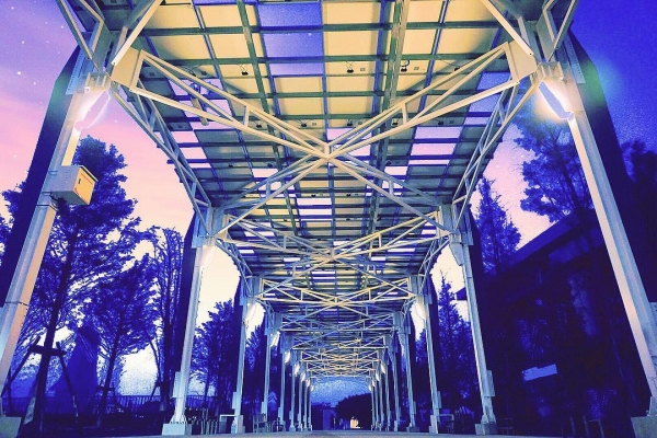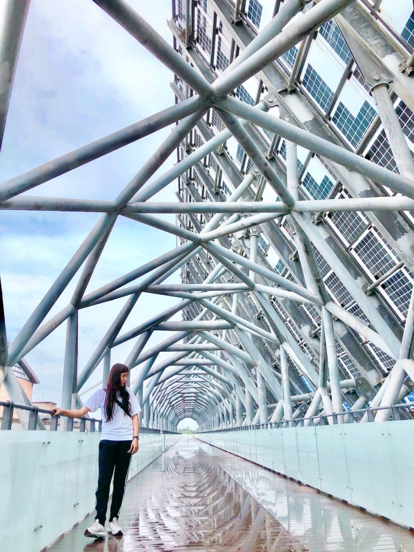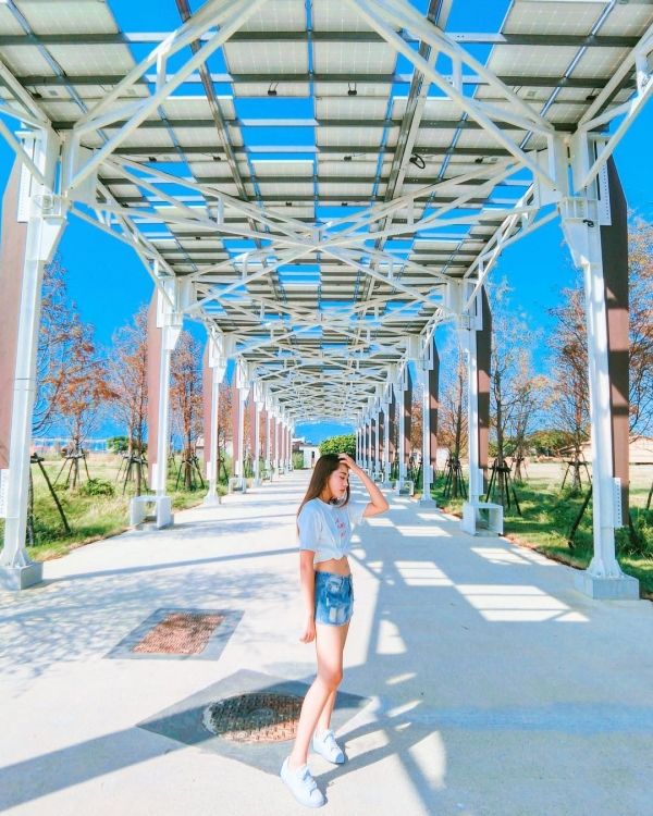 位於桃園農業博覽會內的光電大道,上面滿滿的太陽能板,拼湊成的建築,看起來就像網子一樣,有種說不出的神祕感啊!