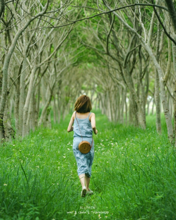 走進這一大片無患子森林,樹木整齊排列,枝幹自然彎曲交錯,遠遠看起像是隧道的入口,營造出神祕的感覺,就像宮崎駿電影裡面的龍貓隧道呢!