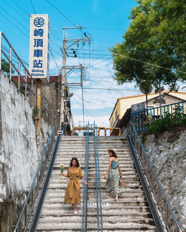 苗栗竹南旅遊景點「崎頂車站」,小小的車站已成為近年IG上熱門的打卡點,因為這裡有類似「你的名字」電影場景內出現的階梯!