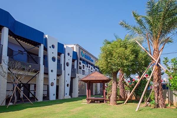 臥躺在房間外的木椅上,觀賞美麗的海景庭園,搭配一望無際的海景,讓人都忘了自己是出來度假的,彷彿像住在這邊的居民一樣。
