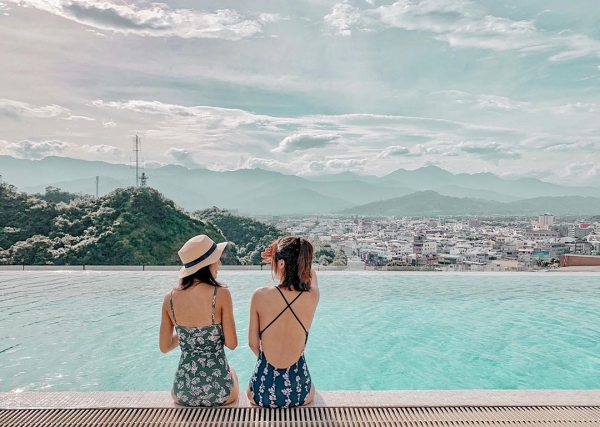 除了交通位置好,這家飯店設計也很有特色~頂樓設有無邊際的游泳池,白天邊游泳邊欣賞鯉魚山美景和台東市街景,晚上拿著啤酒宵夜來欣賞夜景超愜意!