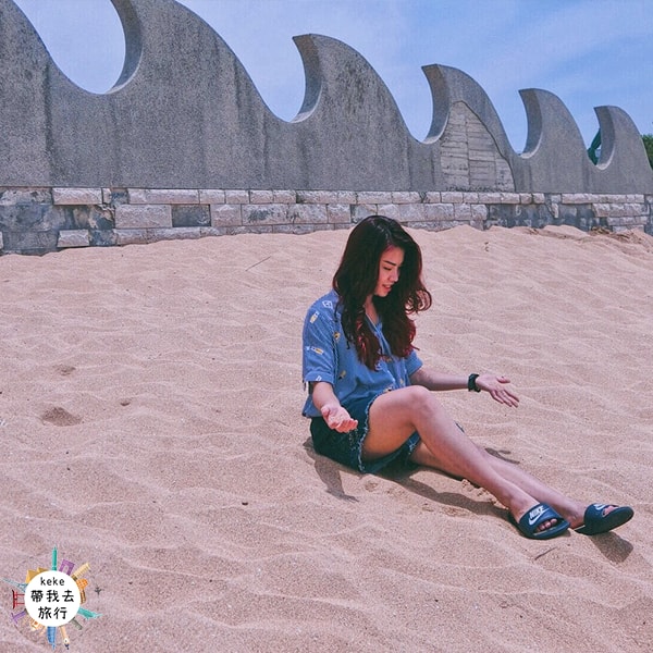 網垵口沙灘美到不像話,媲美馬爾地夫的沙灘,一望無際的天際線,讓人忘了世俗、忘了塵埃,沙灘上還有半月造景,怎麼可以這麼好拍~~