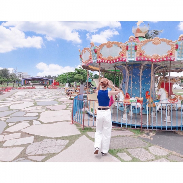 與繽紛的彩虹屋合照,自己感覺也繽紛了起來呢!