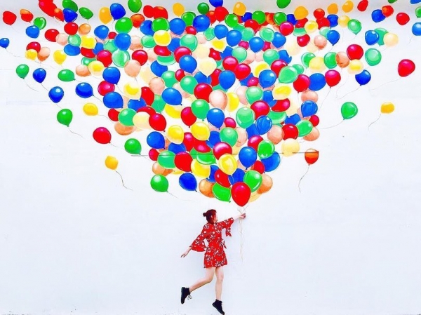 最棒景點絕對是這片超多超大的汽球壁畫,情侶必拍甜蜜合照!