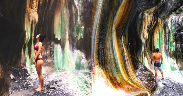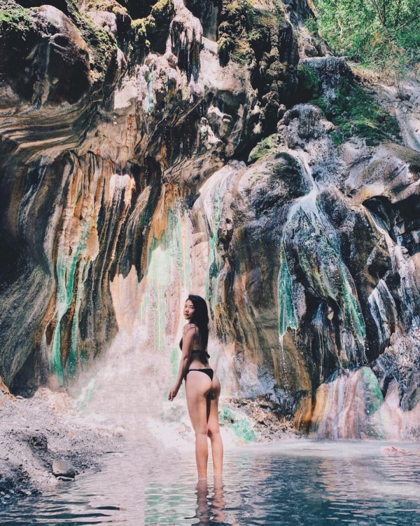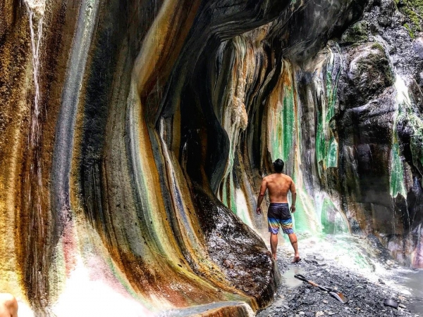 絕美的栗松溫泉!哇~那絢爛的溫泉石壁真是太美,讓人為著大自然的鬼斧神工驚奇著。