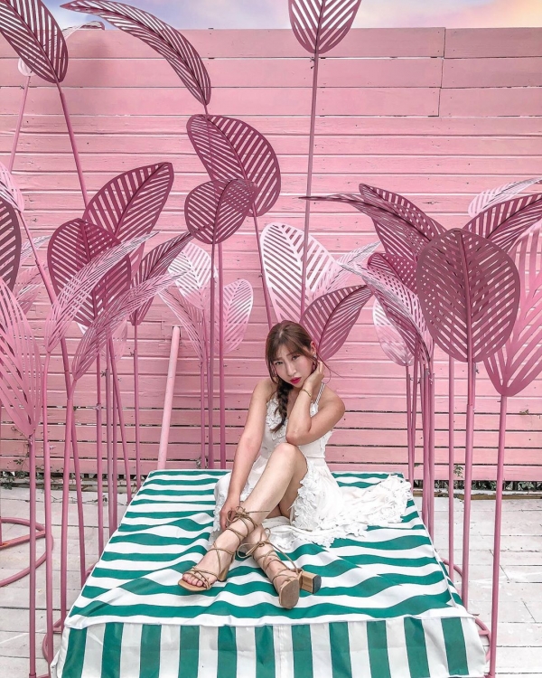 這個粉紅色小叢林雖然是個小小佈景,拍起來卻超可愛!而且很特別、比起峇厘島風,PO在IG上一定更更更吸睛~